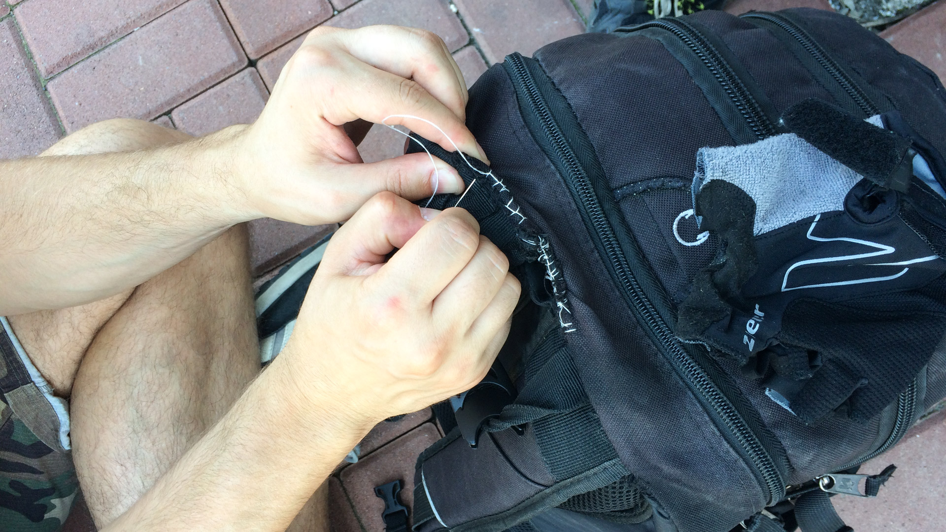 Musieliśmy też naprawić uszkodzony plecak, który niestety zaczął rozrywać się pod ciężarem wszystkich niezbędnych na wyjazd rzeczy, którymi był wypchany :).