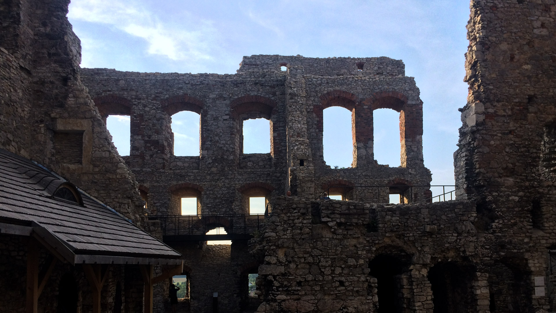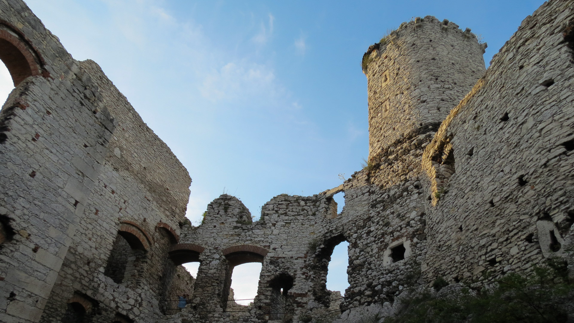 Rano, gdy się zbieraliśmy do wyjazdu, w hotelu było już pusto. Mimo to ekspresowo się wyprawiliśmy w kierunku zamku, po drodze zahaczając o sklep spożywczy. Śniadanie zjedliśmy na zamku, z którego zostały w zasadzie tylko mury zewnętrzne, i tak niekompletne. Ale mimo to, śniadanie w takich okolicznościach przyrody to ciekawe przeżycie.