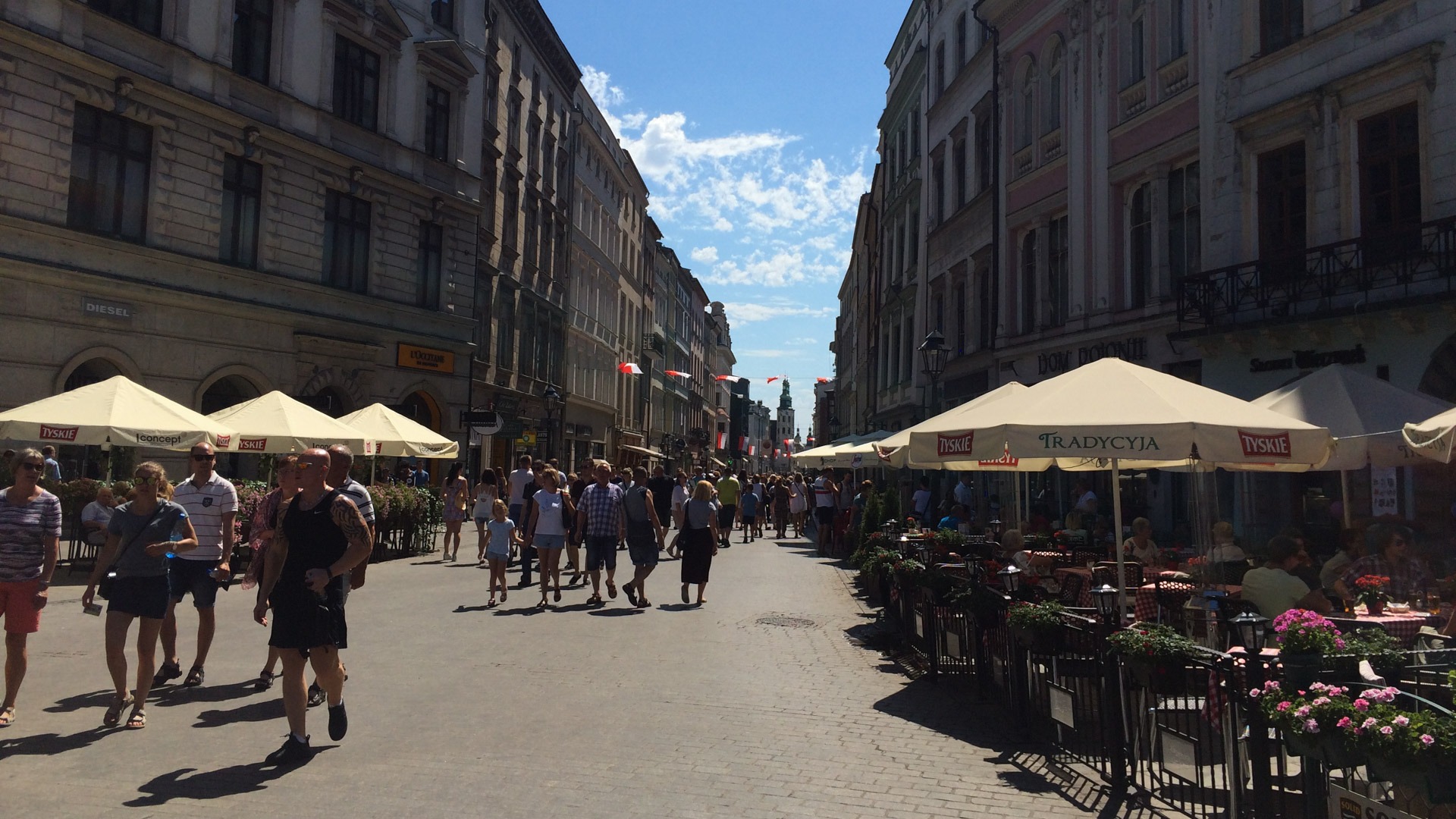 W Krakowie byliśmy sporo przed odjazdem pociągów, postanowiliśmy więc objechać trochę Stare Miasto, jednak wobec tłumów (było sobotnie wczesne popołudnie) wyszedł z tego spacer z rowerem. Byliśmy na Starym Rynku, pod Wawelem i nad Wisłą. Dojeżdżając do dworca mieliśmy tego dnia na liczniku niecałe 35km.