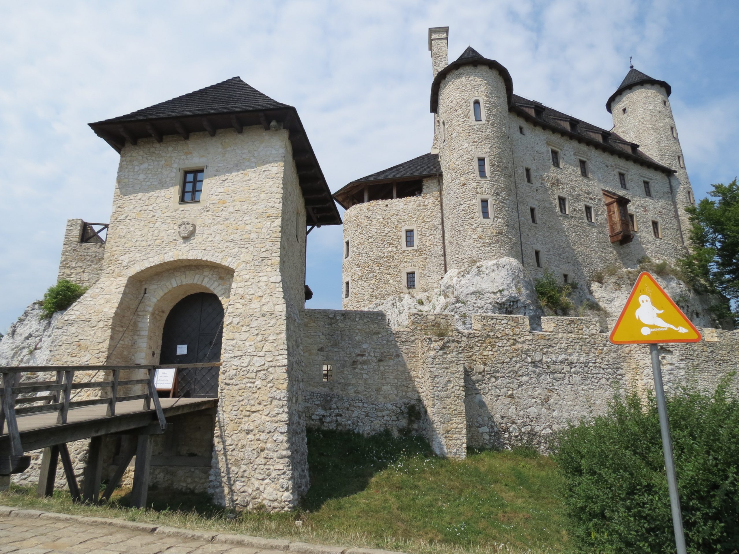 Kolejny dzień był rowerowo prosty (niespełna 20km) – przez Sąspów zajechaliśmy do Pieskowej Skały. Zjazd między tymi miejscowościami jest szalony, jadąc wąską asfaltową drogą trzeba było ciągle mieć rękę na hamulcu i być gotowym na nagłe hamowanie, zwłaszcza na końcówce. Zamek w Pieskowej Skale prezentuje się ładnie, ale turystycznie wiele nie oferuje. Zwiedziliśmy tyle, ile się dało (raptem kilka sal), obeszliśmy dziedziniec, zjedliśmy obiad na śniadanie i porobiliśmy sporo zdjęć zamku i maczugi Herkulesa. Potem ruszyliśmy drogą wojewódzką 773 wzdłuż Prądnika w dół aż do Ojcowa, gdzie pod zamkiem (niewielkim i niedostępnym do zwiedzania) wskoczyliśmy na półtorakilometrowy podjazd do schroniska.