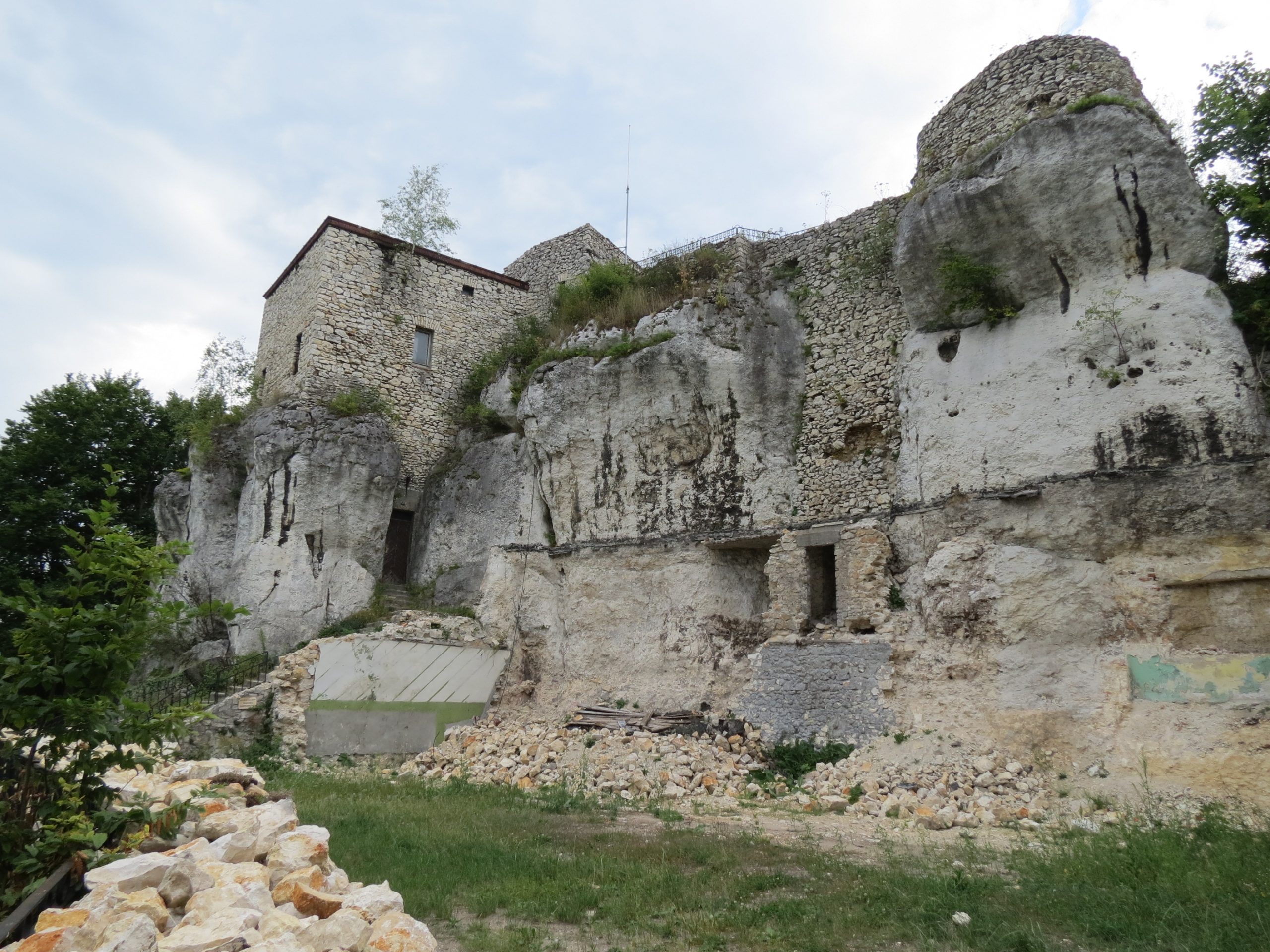 Podczas jedzenia stwierdziliśmy, że trasa jest męcząca i wymagająca, i że z lekka odzywająca się kontuzja barku wymusi na nas zmianę planów. Postanowiliśmy nieco skrócić trasę, i zamiast trzymać się czerwonego szlaku i objechać Podzamcze od północy, ruszyliśmy na południe w kierunku Ryczowa. Tam się rozdzieliliśmy – pozostali pojechali prosto do Bydlina, a ja skręciłem w kierunku Smolenia, chcąc zaliczać jeszcze tamtejszy zamek. Jechałem przez Złożeniec, gdzie wróciłem na czerwony szlak, po drodze zaliczając potężny zjazd i ciężki podjazd, na szczęście asfaltowy. Zamek w zasadzie nie zachwycił, co prawda dziedziniec był otwarty, ale do korytarzy czy komnat wejść się nie dało, co najwyżej powędrować po murze. Spędziłem tam niewiele czasu, robiąc tylko kilka zdjęć, tym bardziej że robiło się ciemno, a ja byłem tylko z mapą papierową.