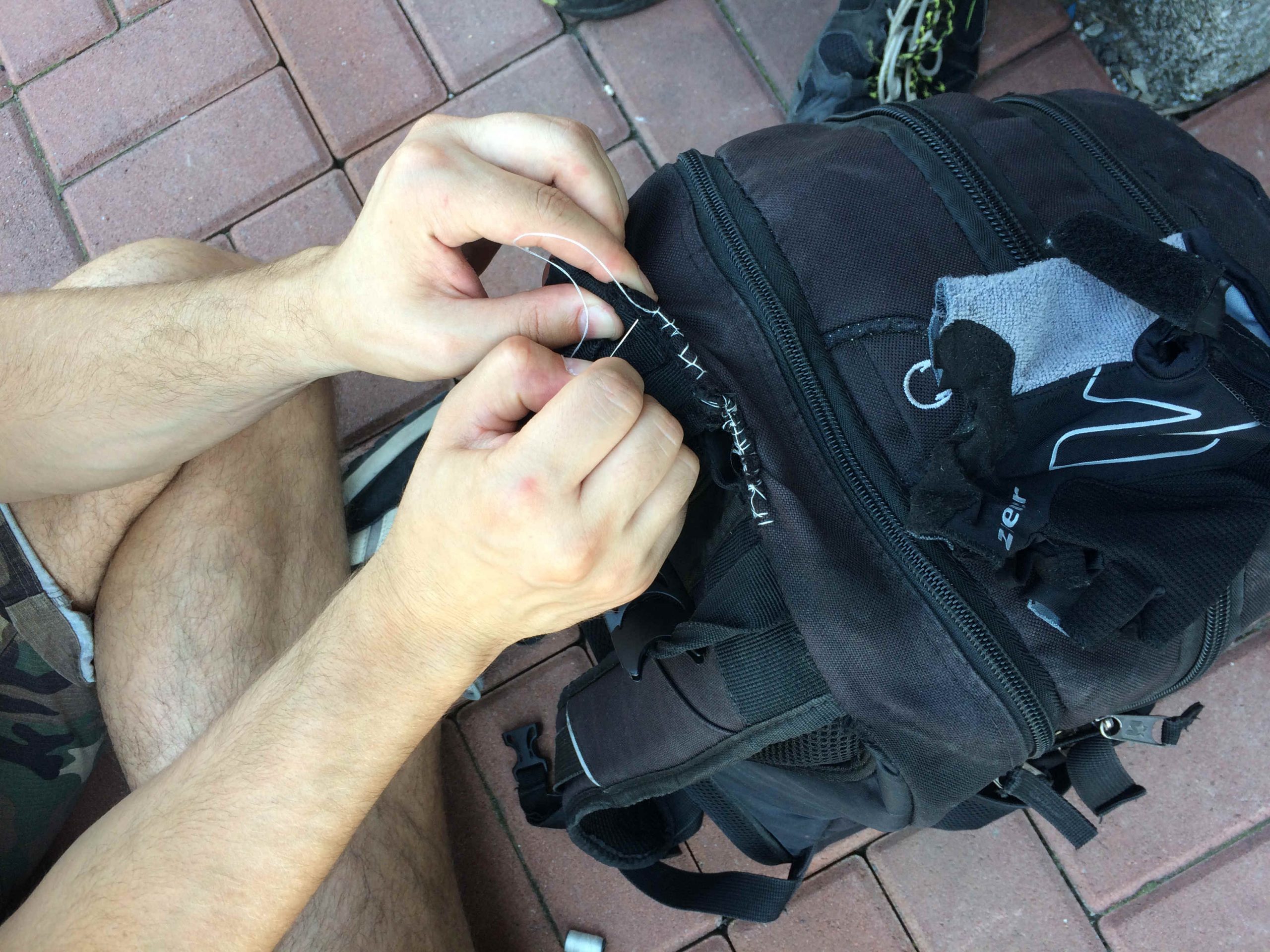 Musieliśmy też naprawić uszkodzony plecak, który niestety zaczął rozrywać się pod ciężarem wszystkich niezbędnych na wyjazd rzeczy, którymi był wypchany :).